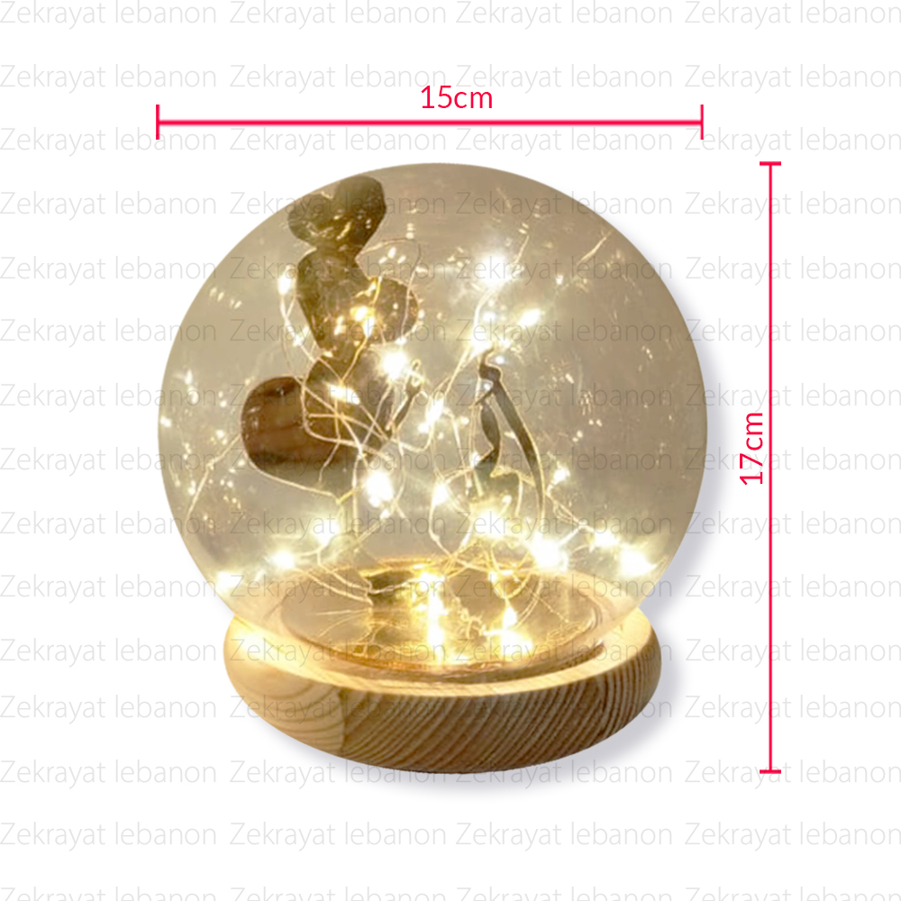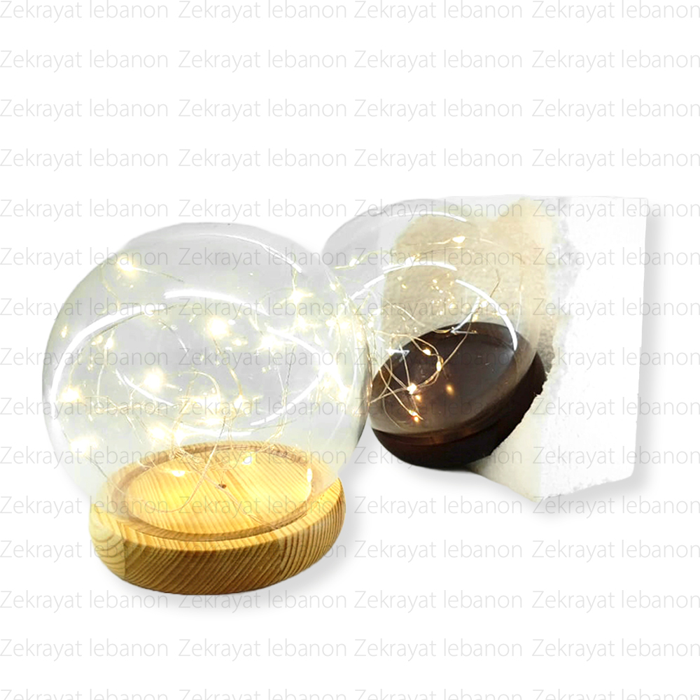 Glass Dome with Lamp Led String Light (Wood Base)