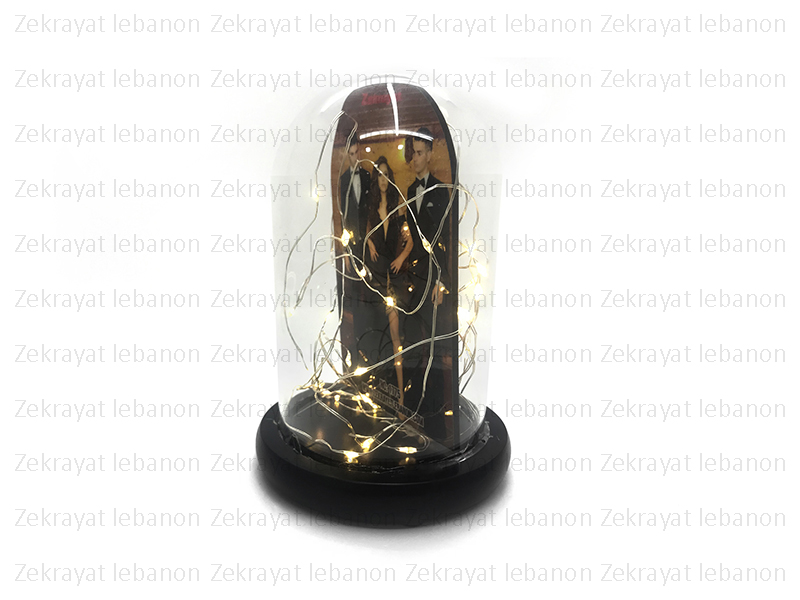 Glass Dome With Lamp Led String Light (Dark Wood Base)